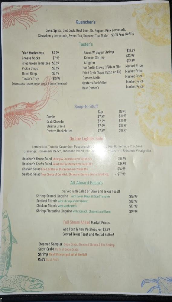 The menu at Baudean's is extensive, offering something for every seafood lover. Signature dishes like shrimp scampi and stuffed crab shine among a wide selection. Appetizers include fried mushrooms and alligator bites, setting the stage for a delightful meal.